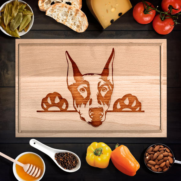 A dobermann mintázatú bükkfa vágódeszka a falkavezéreknek készült. Ajándékötlet apáknak, akik védenek minket. .